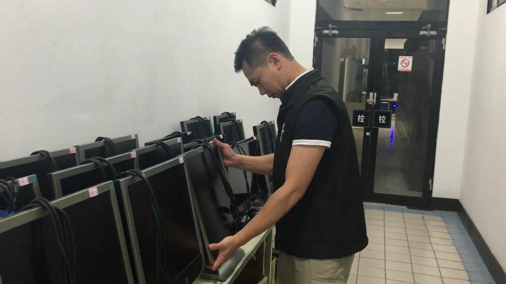 日前嘉義縣警察局刑事警察大隊甫查獲暴力討債集團,近期更持續掃蕩,於5月16日17時許持搜索票在嘉義市垂楊路大樓內查獲張姓、江姓及李姓男子三人所經營之網路運動簽賭中心,起獲網路賭博電腦主機8台、螢幕16台、電腦數據機2台、記帳用隨身碟2支、監視器設備1組等。
